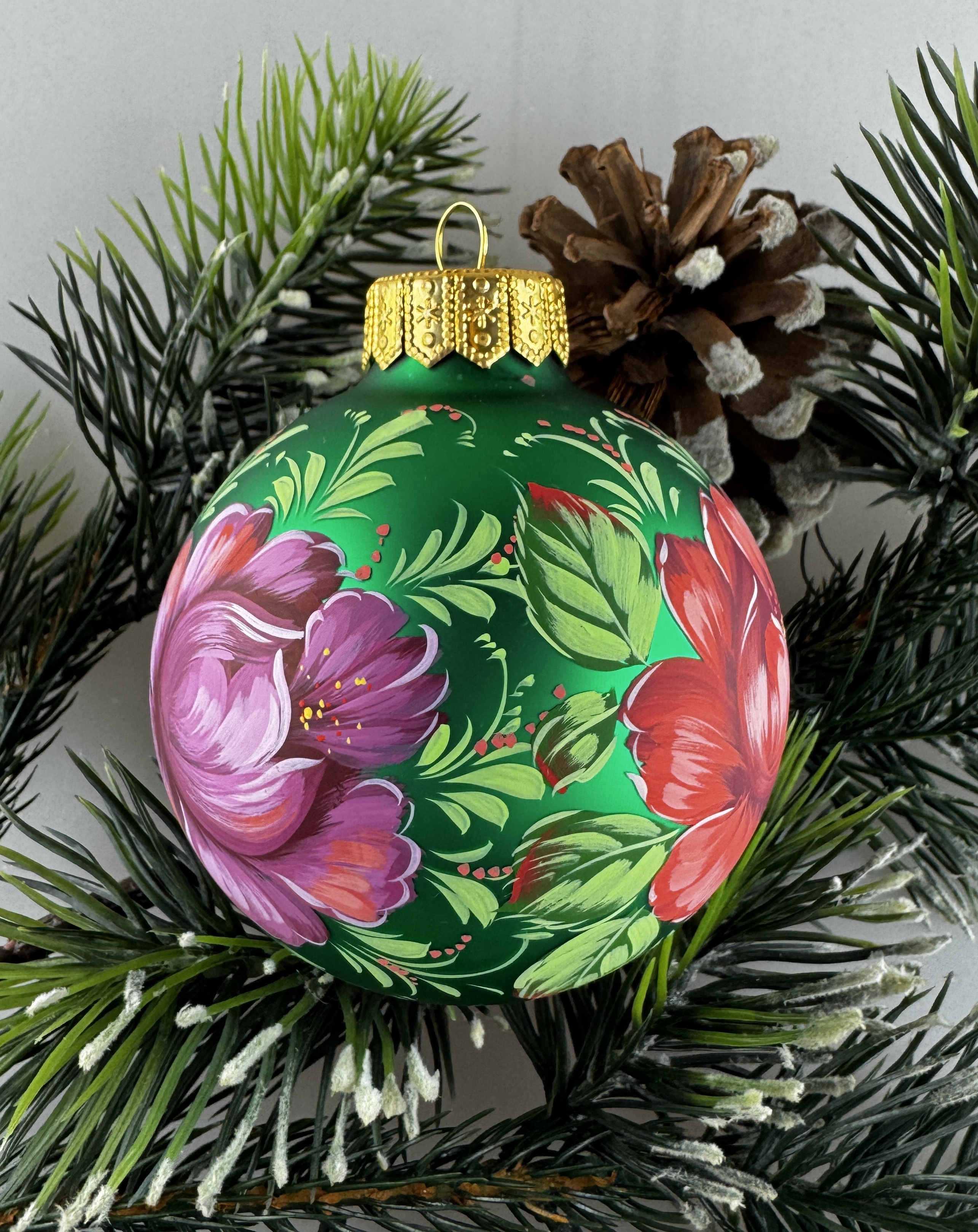 Ёлочные шары с росписью в стиле Жостово